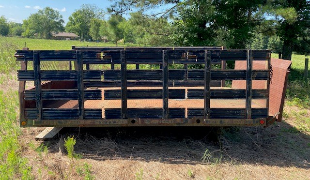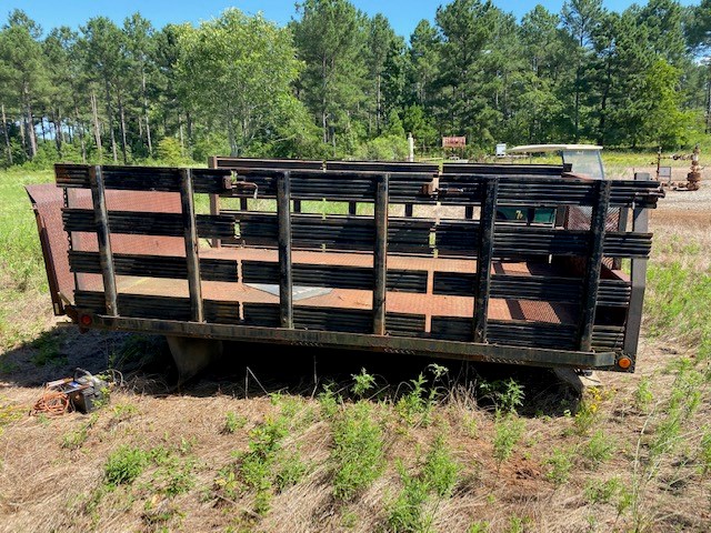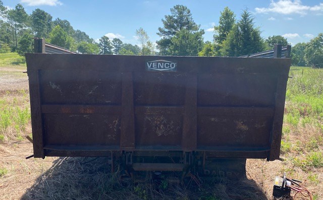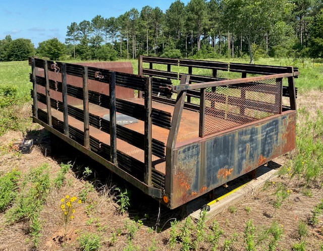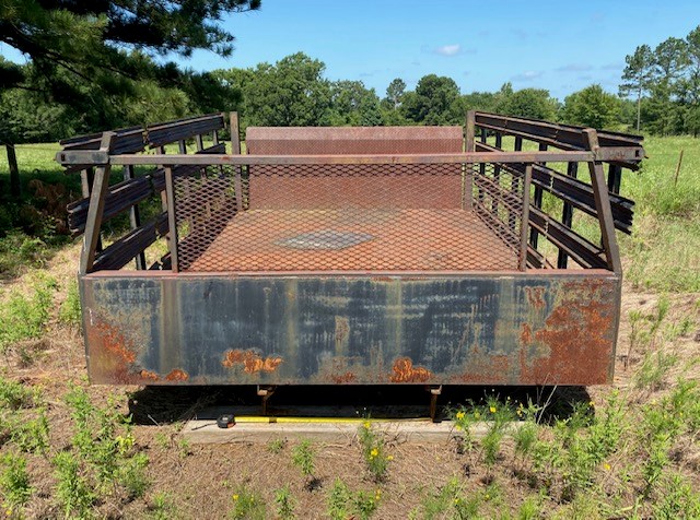 Flatbed with lift gate that fits to a Ford F-450, Length 12' Width 8' Height 40''. Has a VENCO lift gate, between the mount is 33''. All items are sold "As Is". We recommend that you personally inspect each item before bidding.